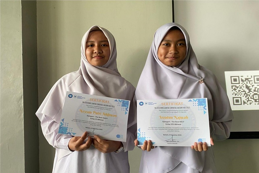 “Selamat kepada seluruh santri yang telah menerima reward atas pencapaian dan dedikasi yang luar biasa. Semoga penghargaan ini menjadi penyemangat untuk terus berprestasi, menjaga akhlak, dan menjadi pribadi yang saleh-salehah serta bermanfaat bagi sesama,” ujar Oka Raka Kuswanda, Humas SMP DTBS Batam.