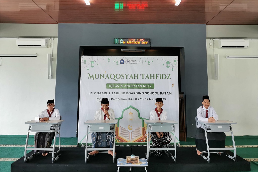 BATAM – Alhamdulillah, santri SMP DTBS Batam sukses melaksanakan Munaqosyah Tahfidz Kelas IX Angkatan IV pada Selasa (11/3) hingga Rabu (12/3) dengan penuh semangat dan keberkahan. Kegiatan yang digelar di Masjid Daarut Tauhiid Batam ini menjadi momen penting bagi para santri untuk menunjukkan kemampuan mereka dalam menghafal, membaca, dan melafalkan Al-Quran.