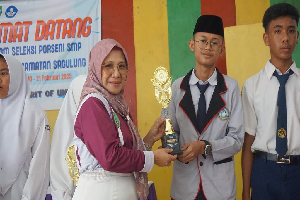 BATAM – Alhamdulillah kabar gembira hadir dari SMP Daarut Tauhiid Boarding School (DTBS) Batam, Adam Faris Elramadhany, santri kelas IX-A, berhasil meraih juara 1 dalam kegiatan PORSENI 2025 Cabang Lomba Tilawah tingkat Kecamatan Sagulung. Kegiatan tersebut diselenggarakan di SMP DTBS Batam, pada Sabtu (15/2).
